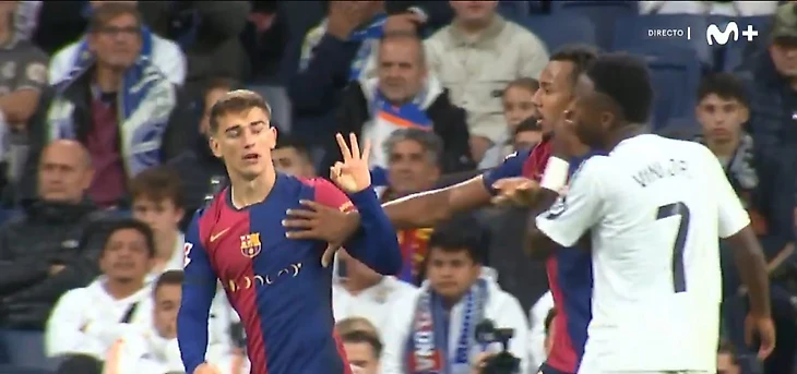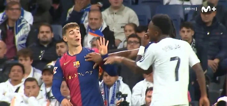 Винисиус требовал карточку для Гави после того, как хавбек «Барсы» сфолил на нем. Гави в ответ несколько раз сказал «4:0» и жестами показал счет