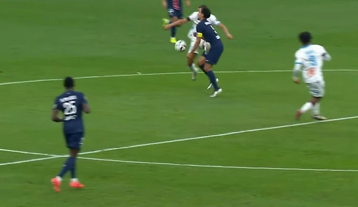 Полузащитник Амин Харит получил красную карточку на 20-й минуте игры 9-го тура чемпионата Франции. Пытаясь принять мяч, он выставил ногу почти параллельно газону, и в нее животом врезался защитник парижан Маркиньос.