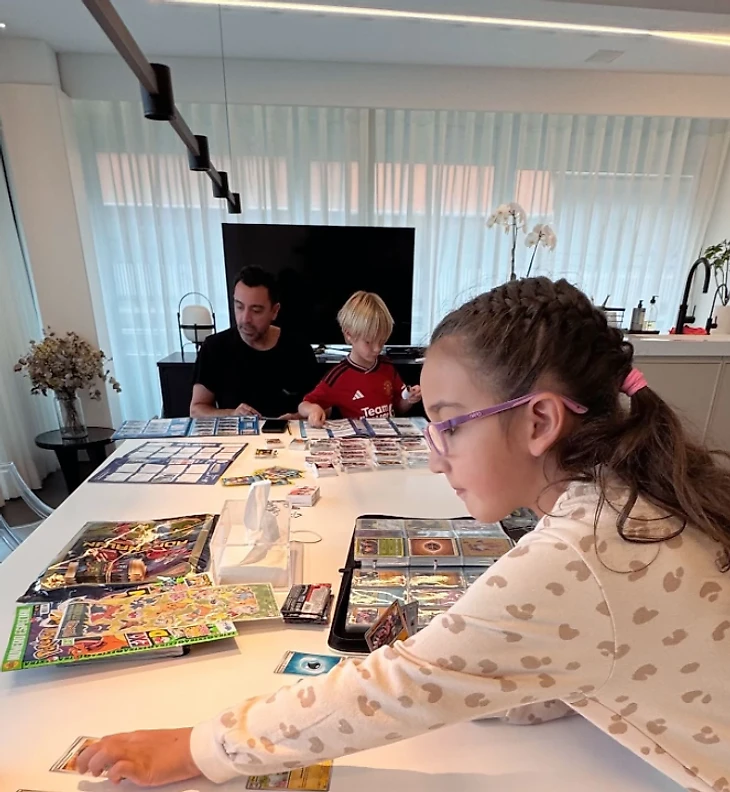 Супруга экс-тренера «Барселоны» Нурия опубликовала в соцсетях фотографию, на которой Хави сидит за столом с пятилетним сыном Дэном и восьмилетней дочерью Асией.