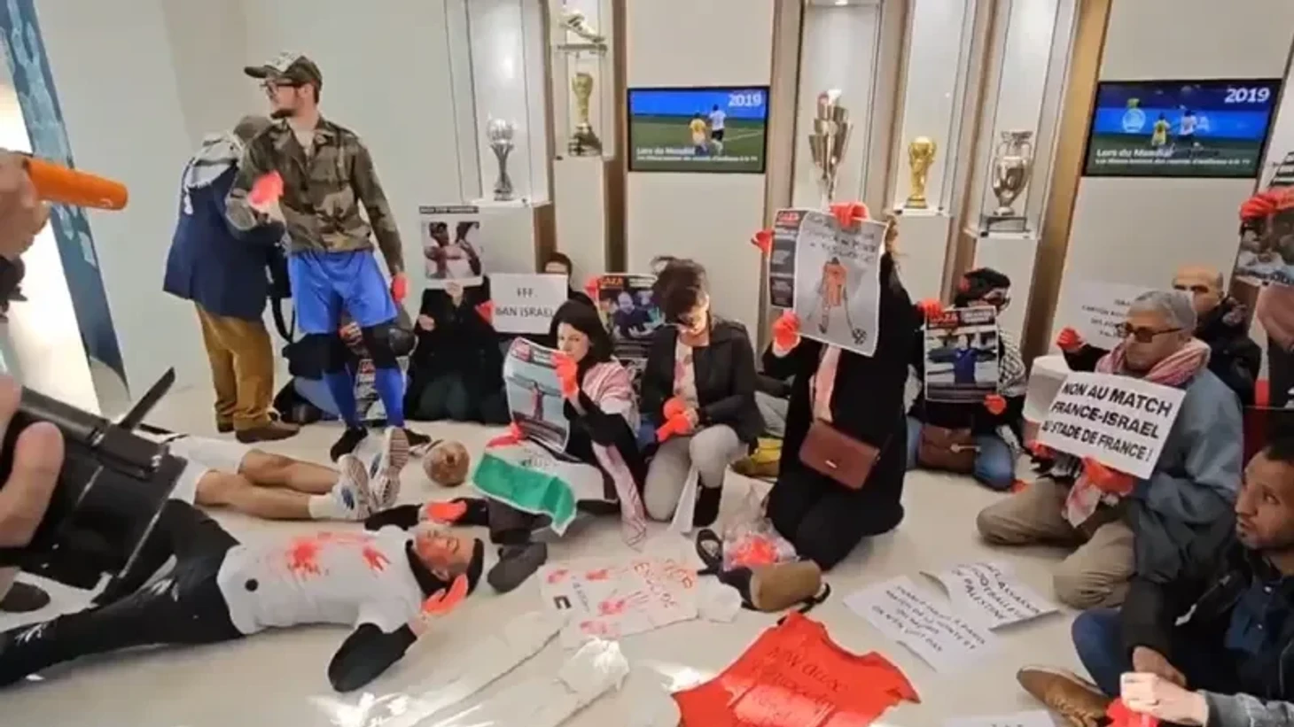 Пропалестинские активисты устроили акцию протеста в здании FFF. Они против проведения матча с Израилем на «Стад де Франс» при открытых дверях