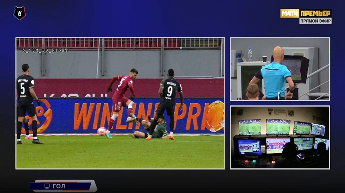 На 87-й минуте матча 15-го тура Мир РПЛ (1:1) Олакунле Олусегун забил гол. Однако судья Сергей Карасев после подсказки от арбитра ВАР посмотрел повтор, отменил взятие ворот и показал желтую карточку хавбеку «быков» Эдуарду Сперцяну за фол перед голом.