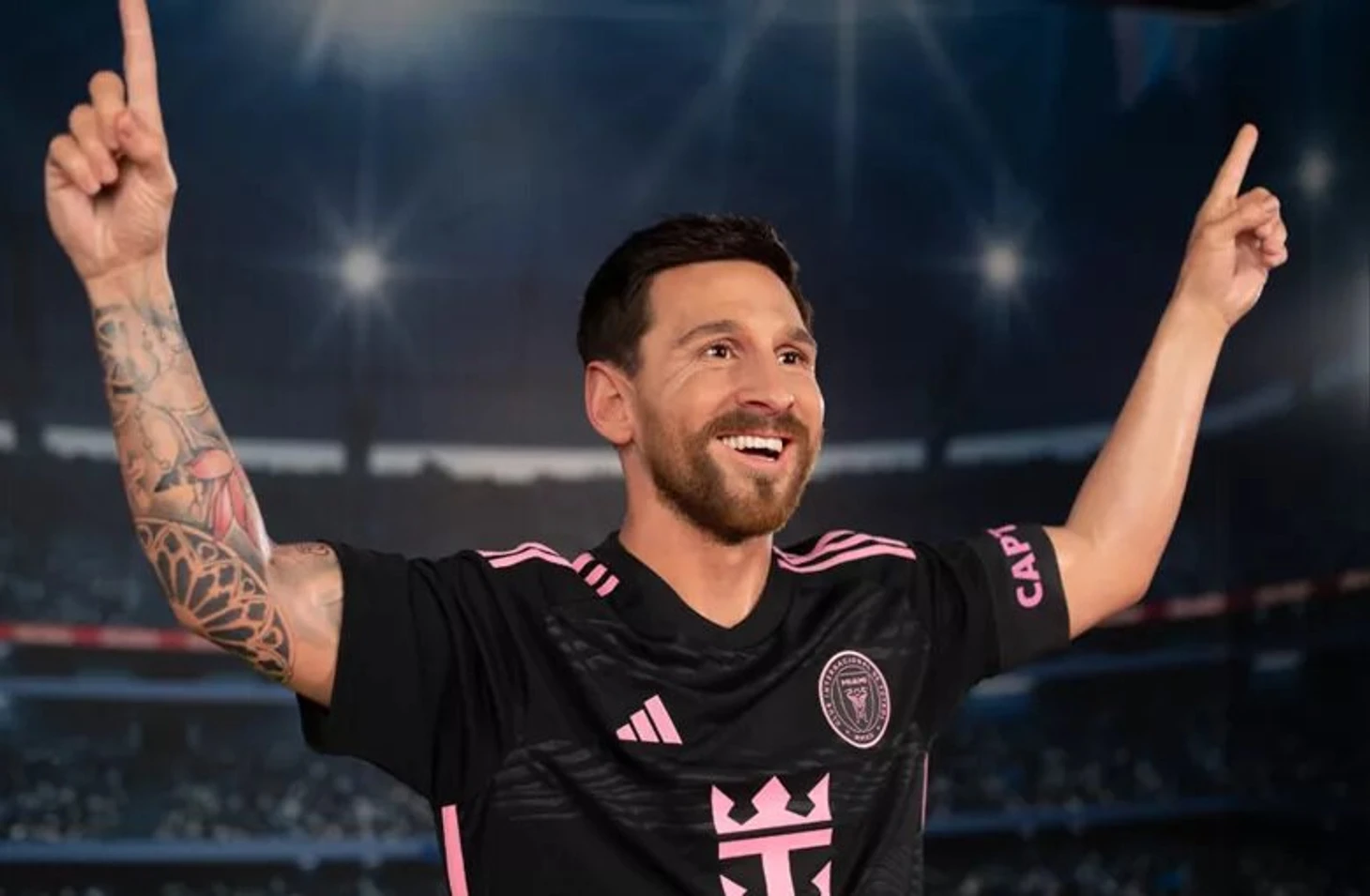Он гордо представлен в форме клуба «Интер Майами», олицетворяя дух и страсть, которые он приносит на поле.