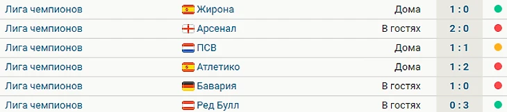 Это первая победа «ПСЖ» в 5 последних еврокубковых матчах. Ранее парижане проиграли «Баварии» (0:1), «Атлетико» (1:2), «Арсеналу» (0:2) и сыграли вничью с «ПСВ» (1:1). В первом туре «ПСЖ» обыграл «Жирону» с минимальным счетом.