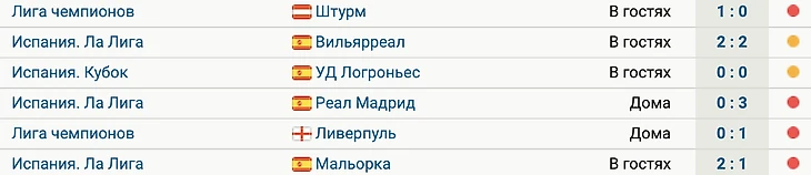 У команды 4 поражения и две ничьих в последних шести матчах. Последняя победа была над «Эспаньолом» в Ла Лиге (4:1) 23 ноября.