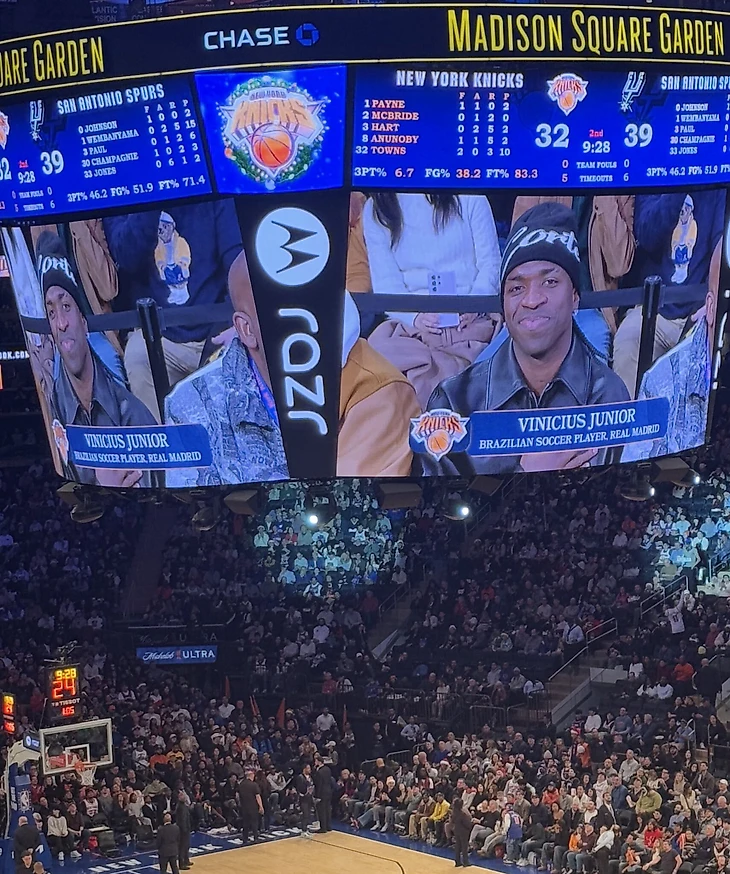 Винисиус посетил матч НБА «Нью-Йорк» – «Сан-Антонио». Вингера «Реала» показали на медиакубе