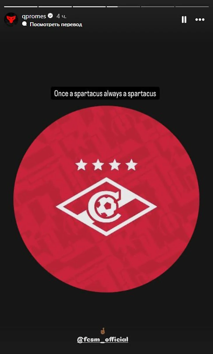 Бывший полузащитник красно-белых опубликовал сторис с эмблемой клуба.