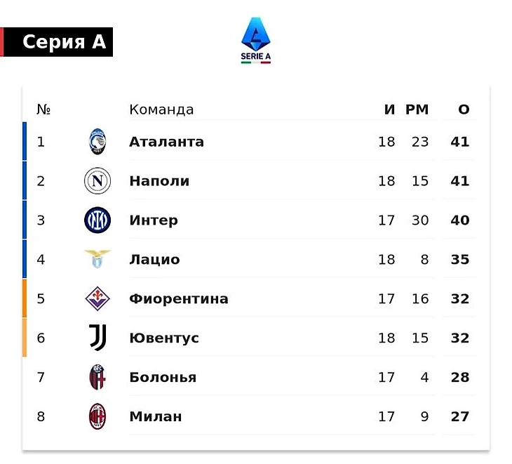«Россонери» занимают 8-е место в таблице Серии А и отстают от топ-4 на 8 очков при игре в запасе.