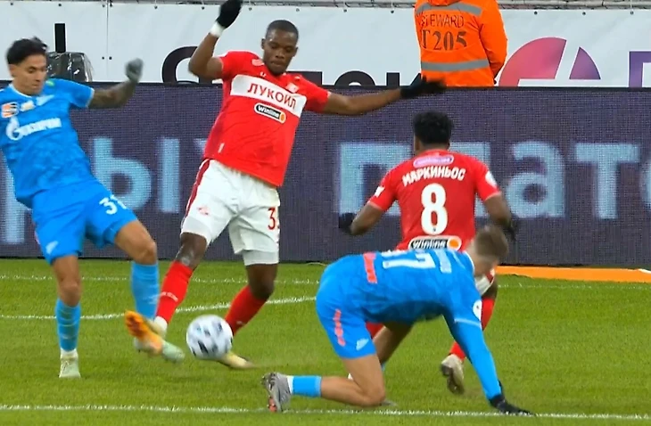 Мантуан ударил Мартинса сзади по ноге в штрафной «Зенита». Иванов не дал «Спартаку» пенальти