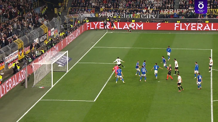 В этот момент немцы быстро разыграли угловой. Мусиала находился один во вратарской, Джамал получил пас от Йозуа Киммиха с угла поля и отправил мяч в пустые ворота.
