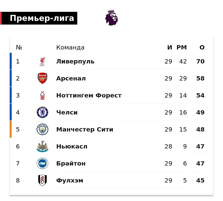 Англия и Испания лидируют в борьбе за 5-е путевки в ЛЧ-2025/26, Италия – третья