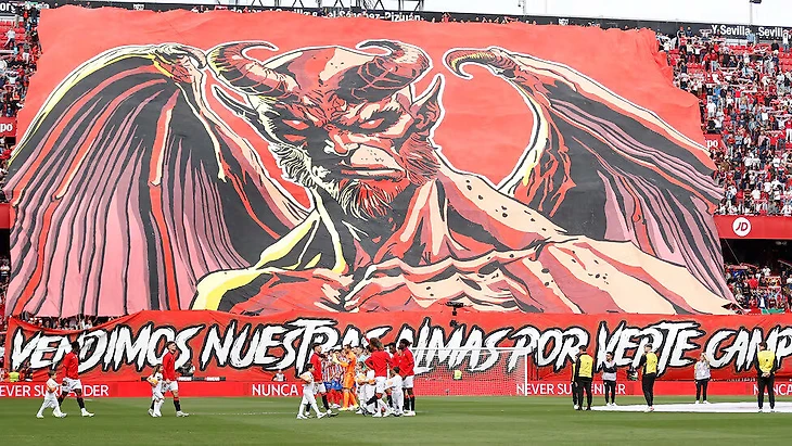 Фанаты «Севильи» вывесили баннер с дьяволом перед матчем с «Атлетико»: «Мы продали души, чтобы увидеть ваше чемпионство». Их раскритиковали католические организации