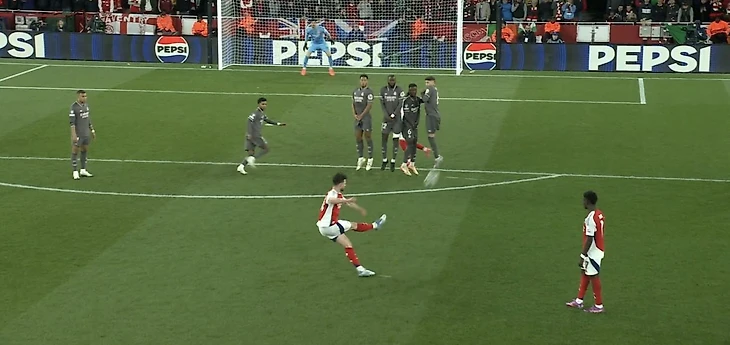 На 70-й минуте Райс сделал дубль, снова забив со штрафного. На этот раз Деклан перекинул стенку и попал в девятку.