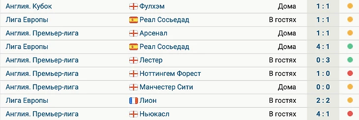 Ранее она разделила очки с «Манчестер Сити» (0:0) и уступила «Ноттингем Форест» (0:1) в АПЛ, а также сыграла вничью с «Лионом» в первом матче 1/4 финала Лиги Европы (2:2).