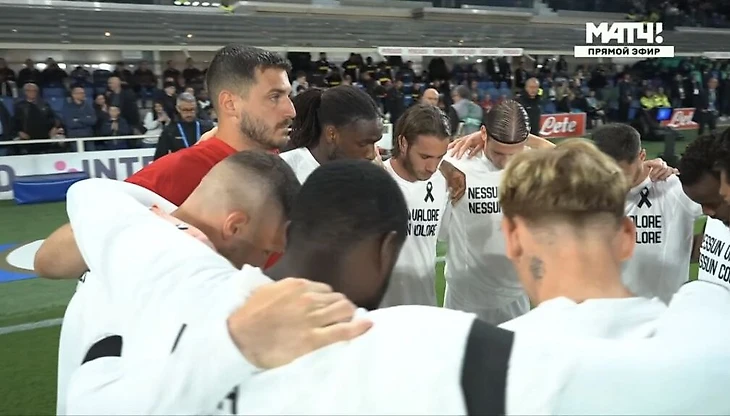 «Лечче» осудил проведение матча с «Аталантой» на фоне смерти физиотерапевта: «Ужасное неуважение к трауру». Футболисты играют в белых футболках с надписью «Нет ценностей – нет цветов»