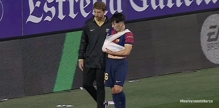 На 34-й минуте Родригес схватился за плечо после единоборства с защитником соперника Адамом Азну. Медики перевязали футболисту руку, он покинул поле. Дани заменил Ламин Ямаль.