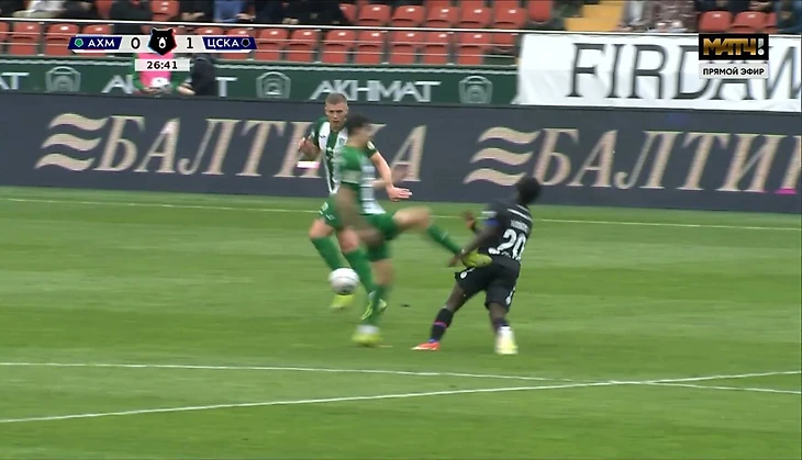 Главный арбитр встречи Артем Чистяков показал игроку «Ахмата» желтую карточку. Пересмотреть эпизод на ВАР судью не звали.