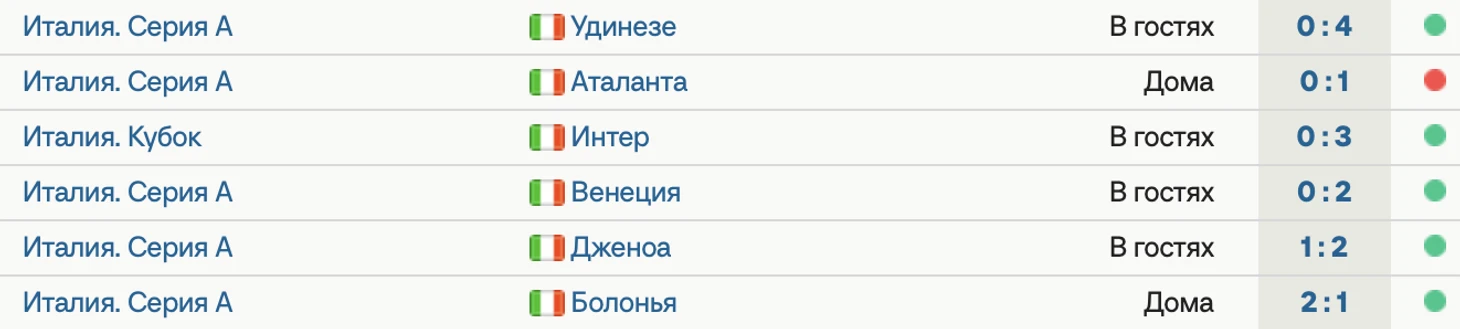 За последние 6 матчей у «Милана» лишь одно поражение – от «Аталанты» (0:1).