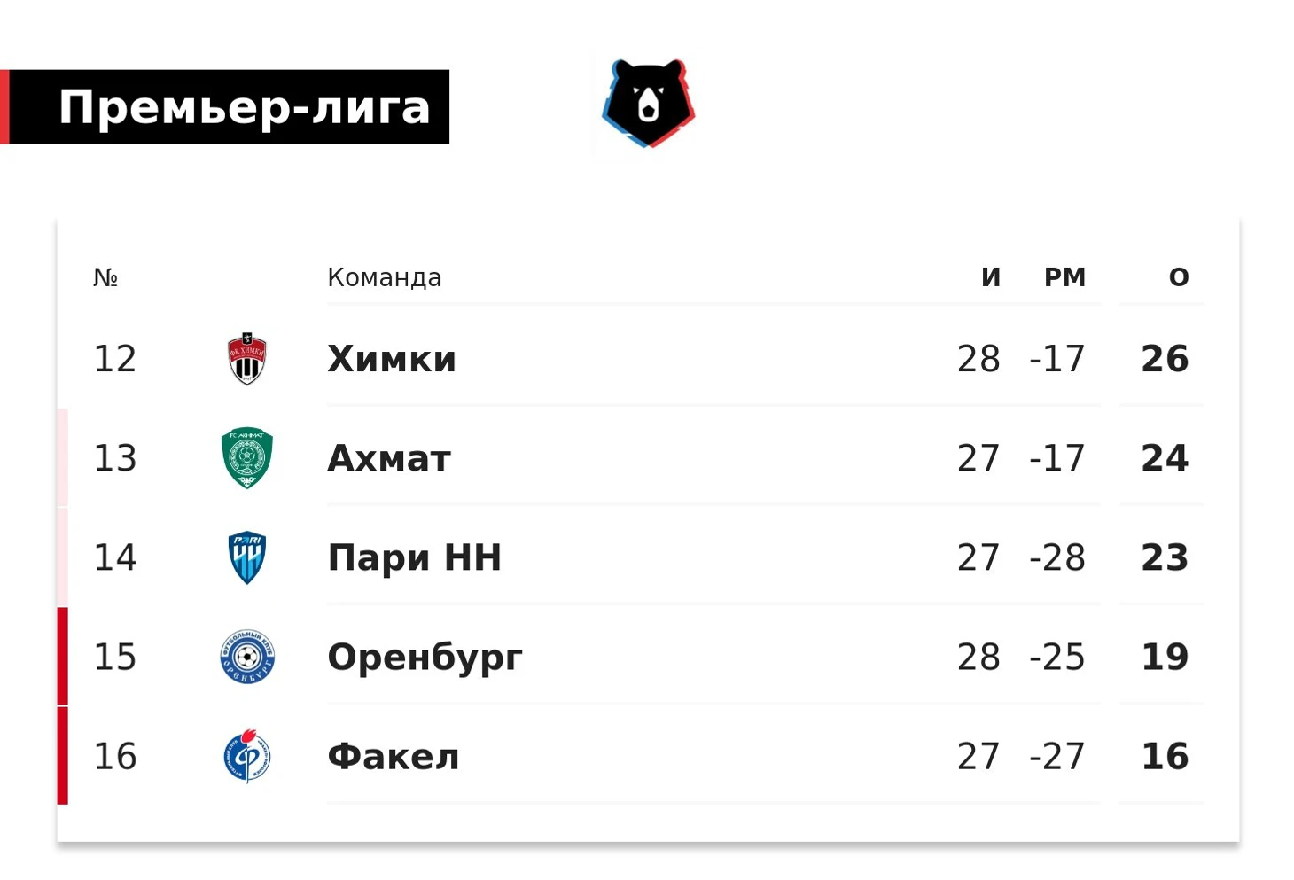 «Химки» избежали прямого вылета из РПЛ. «Оренбург» не поднимется выше зоны стыков
