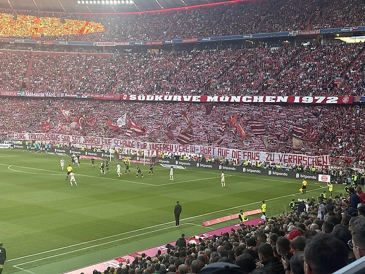 Во втором тайме болельщики «Баварии» вывесили баннер, критикующий форму.