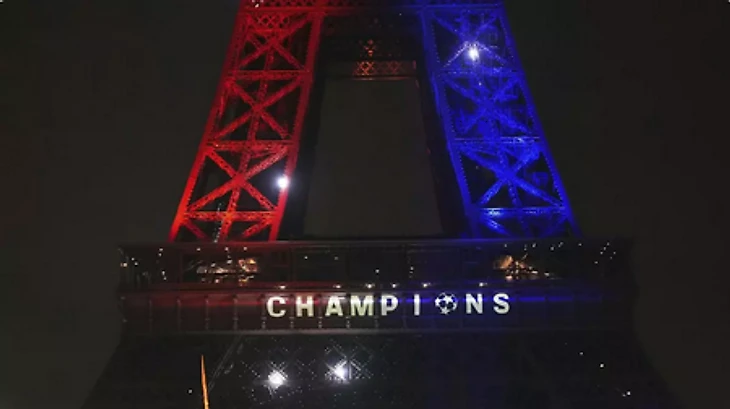 В субботу вечером после финала с «Интером» (5:0) символ столицы Франции окрасился в красно-синие цвета с надписью «Париж – чемпион».