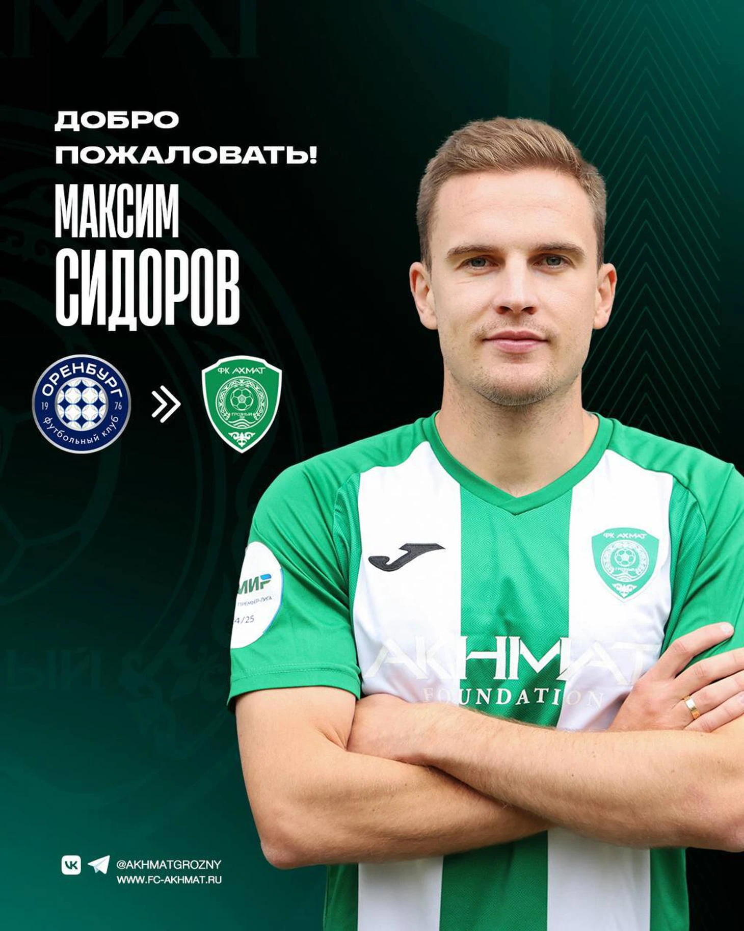 «Ахмат» подписал защитника «Оренбурга» Сидорова. Контракт – на 3 года