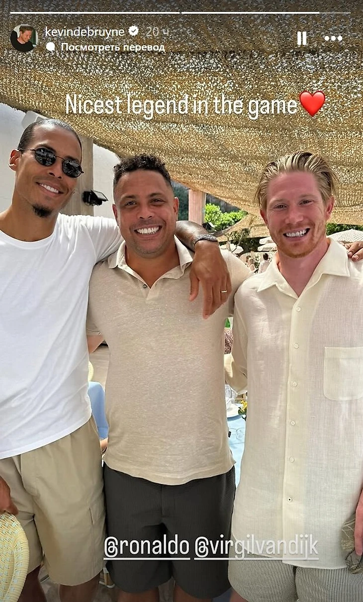 Де Брюйне выложил фото с Роналдо: «Самая приятная футбольная легенда»