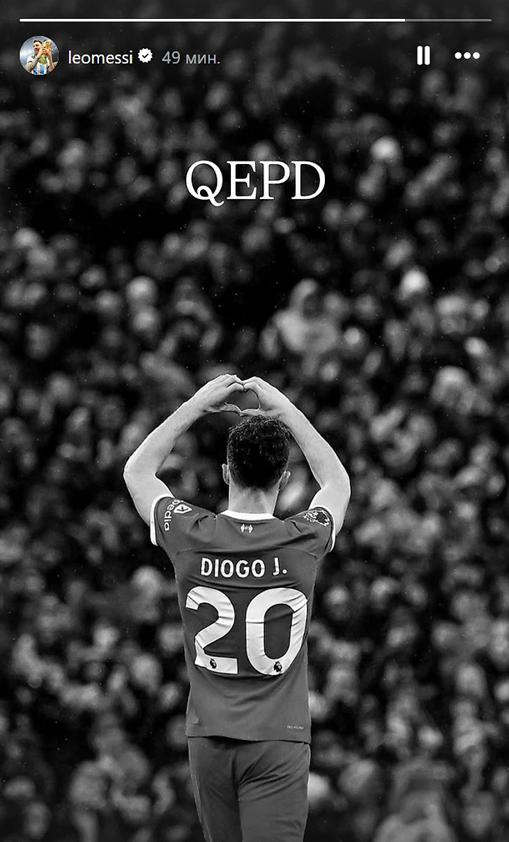 Месси выложил фотографию Жоты и сопроводил ее аббревиатурой QEPD («que en paz descanse» – «покойся с миром»).