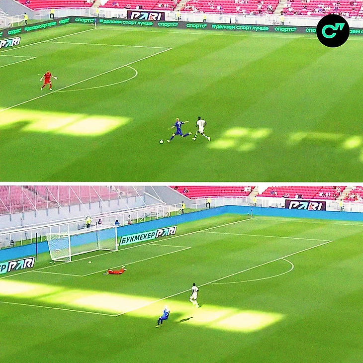 На 65-й минуте при счете 1:0 в пользу «Краснодара» Александров, убегая с мячом от Джона Кордобы, отдал передачу в направлении голкипера «Пари НН» Никиты Медведева. Пас получился слишком сильным, и Медведев не смог поймать мяч, который, отскочив от газона, оказался в сетке ворот нижегородцев.
