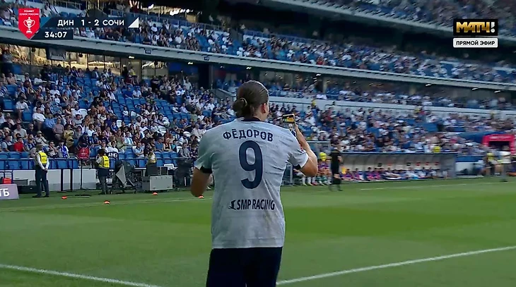 Затем Захар Федоров отличился, когда на табло было 34:00. 20-летний форвард реализовал выход один на один и отпраздновал взятие ворот, сделав селфи на телефон. Это его первый гол за основную команду южан.