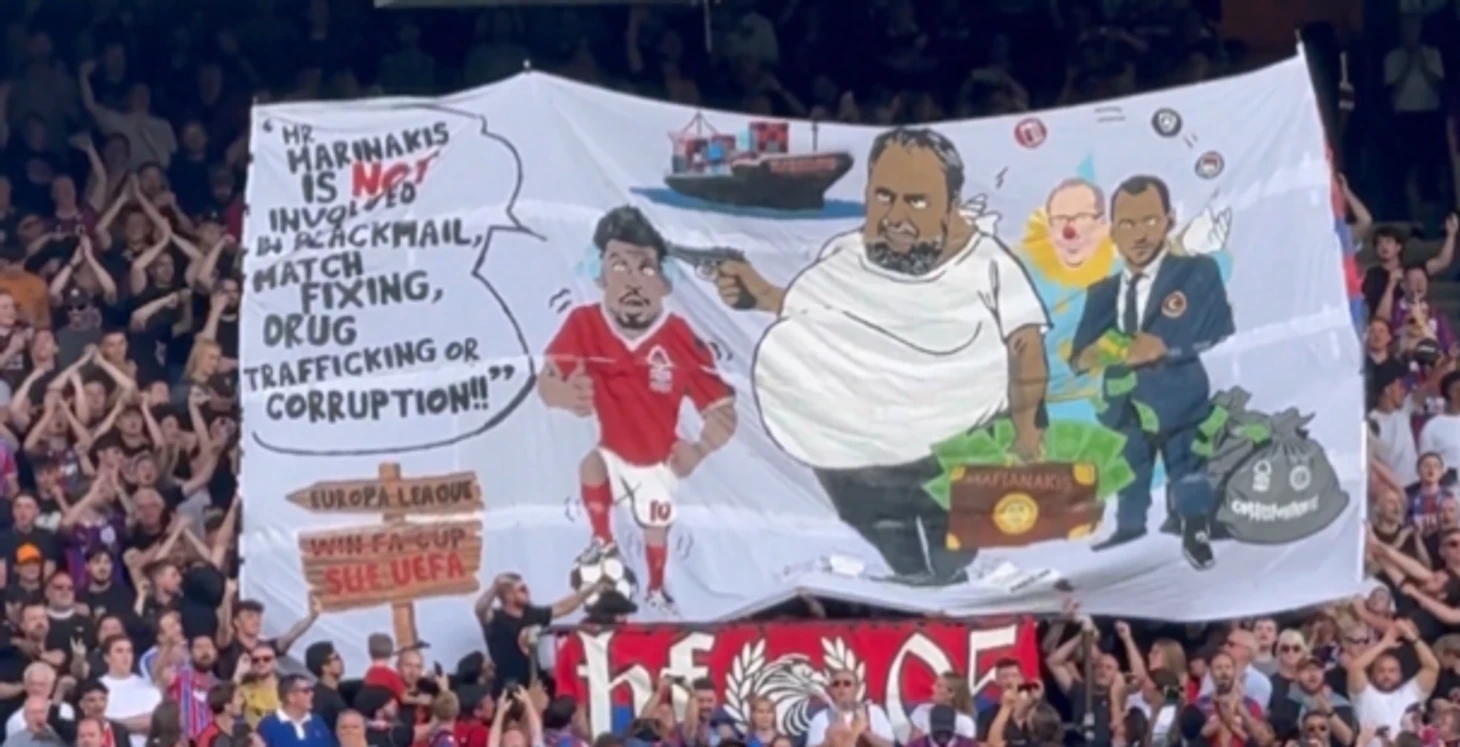 «Пэлас» могут наказать за баннер фанатов с изображением Маринакиса. На нем владелец «Фореста» приставил пистолет к голове Гиббс-Уайта и держит портфель с надписью «Мафиянакис»