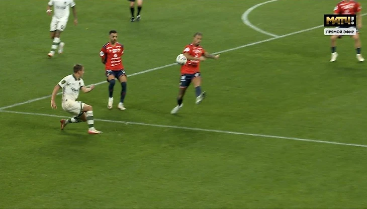 На 81-й минуте мяч попал в локоть Жоао Виктору в штрафной армейцев после подачи Сергея Петрова.