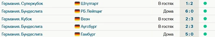 Уже на 3-й минуте счет открыл атакующий полузащитник хозяев Серж Гнабри. На 9-й отличился защитник Александар Павлович с паса Харри Кейна. На 26-й англичанин реализовал пенальти. На 29-й забил Луис Диас. На 62-й Кейн забил с игры.