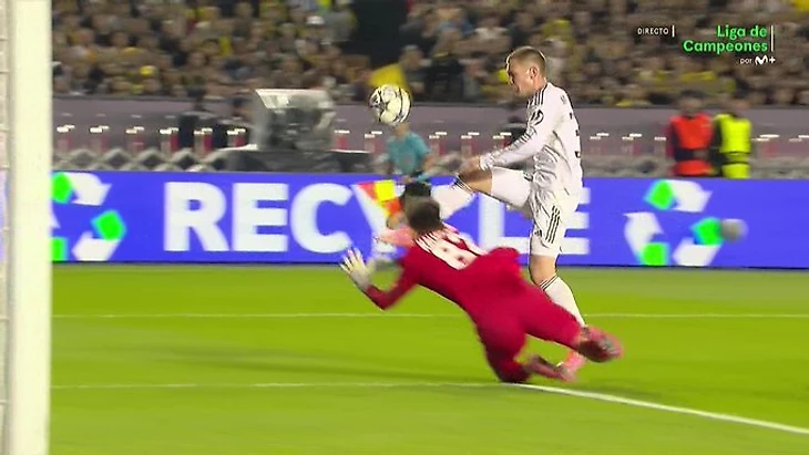 «Реал» забил «Кайрату» с пенальти за фол Калмурзы. Вратарь сбил Мастантуоно после неудачного паса Сорокина назад