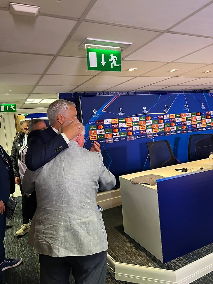 Пулман поделился с тренером печеньем, которое принес с собой, и обнялся с Моуринью.