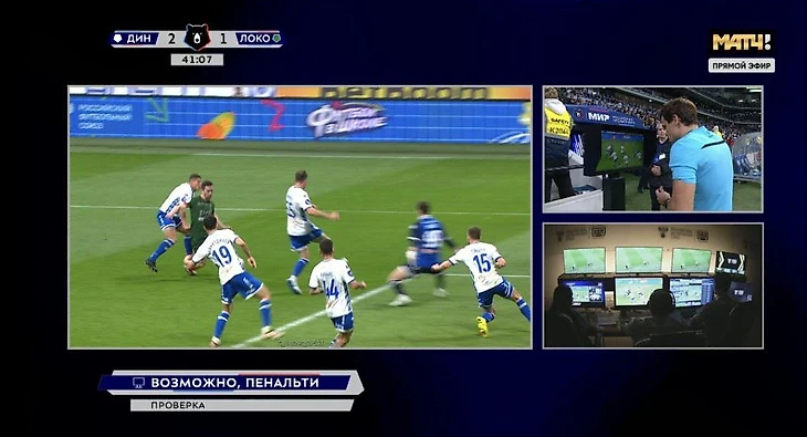 Видеоассистенты позвали главного судью встречи Кирилла Левникова к монитору. Тот, ознакомившись с повтором, назначил 11-метровый в ворота бело-голубых.