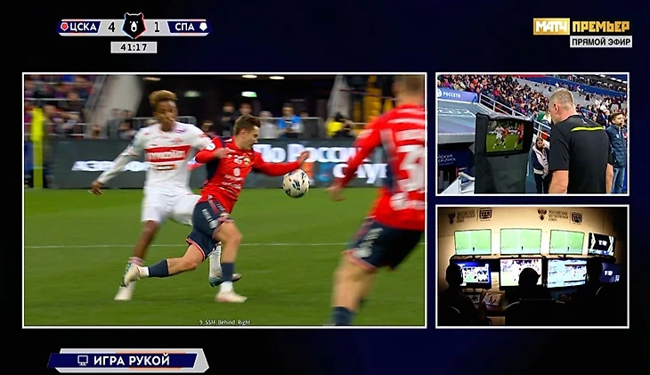 Однако Виталий Мешков, отвечающий сегодня за ВАР, позвал коллегу к монитору. Чистяков изучил повтор и отменил гол армейцев. Рефери объявил, что хавбек Иван Обляков «сыграл рукой в активной фазе атаки».