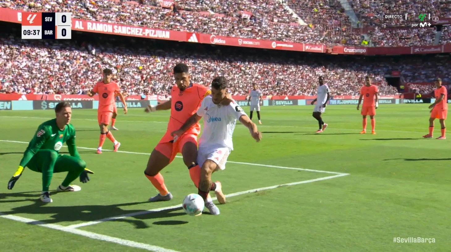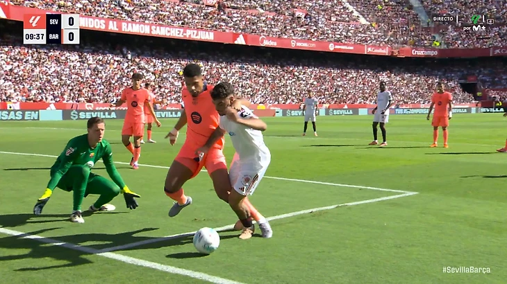 Команды проводят матч в рамках 8-го тура Ла Лиги. На 10-й минуте нападающий «Севильи» Исаак Ромеро упал в штрафной площади соперника в результате борьбы с Рональдом Араухо. Главный судья встречи Алехандро Муньис назначил 11-метровый, Алексис Санчес забил с точки.