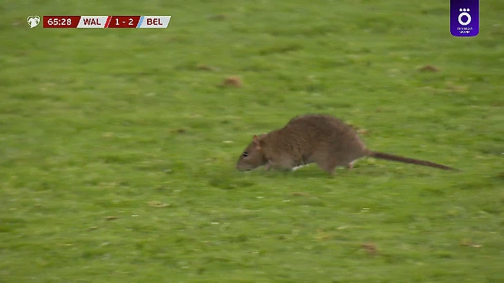 • Крыса выбежала на поле в матче Бельгии и Уэльса. Хавбек «Тоттенхэма» Джонсон прогнал ее за бровку