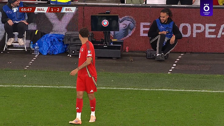 Крыса выбежала на поле во время матча Бельгии и Уэльса.