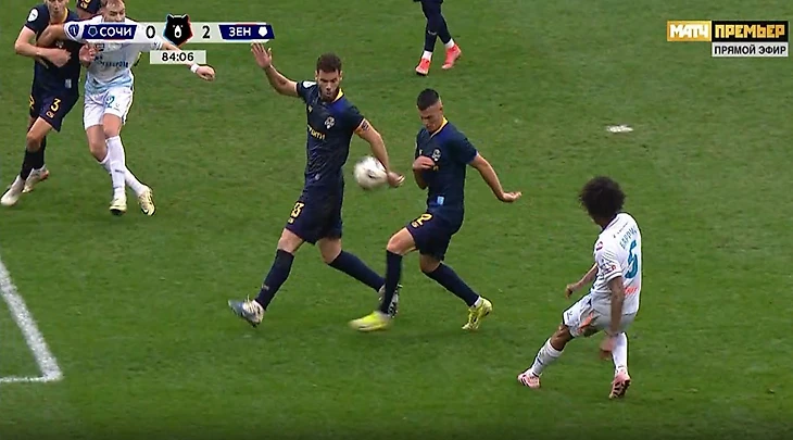 «Зенит» заработал второй пенальти в матче с «Сочи».