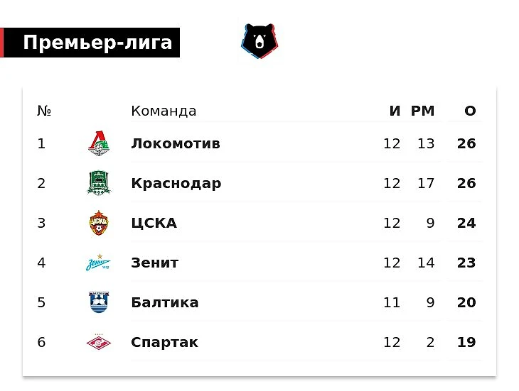 «Зенит» набрал 23 очка и занимает четвертое место в таблице. У ЦСКА – на один балл больше. «Краснодар» и «Локомотив» имеют по 26 очков.
