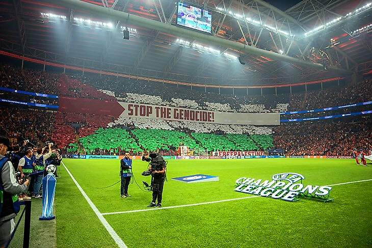 «Остановите геноцид!» Фанаты «Галатасарая» вывесили баннер и изобразили флаг Палестины на трибуне перед игрой с «Буде-Глимт» в ЛЧ