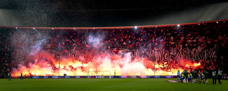 Перед началом встречи фанаты «Фейеноорда» устроили на трибунах перфоманс, сопровождавшийся файер-шоу.