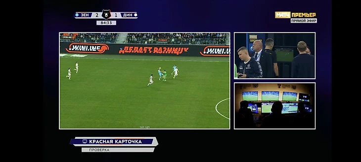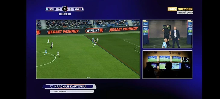 Изначально судья Алексей Сухой показал прямую красную карточку Расулову. После ВАР арбитр отменил гол «Зенита» из-за офсайда, а также поменял решение об удалении: вместо красной вратарю «Динамо» показали желтую карточку.