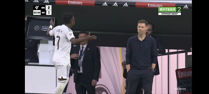 Винисиус и Алонсо не пожали друг другу руки: игрок не подал руку тренеру. Вингер сразу ушел в раздевалку, но позднее вернулся на скамейку.