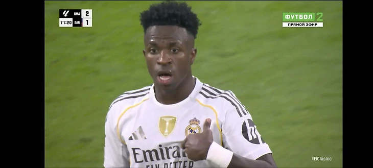 Увидев, что его меняют, Винисиус указал пальцем на себя, уточнив, действительно ли это так. После этого бразилец начал недовольно жестикулировать и высказываться, уходя с поля.