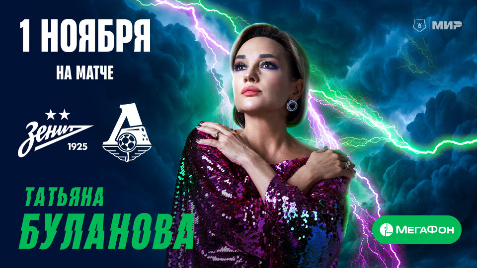 Перед матчем на главной сцене арены со своими хитами выступит российская исполнительница Татьяна Буланова. Поддержите петербуржцев на стадионе!