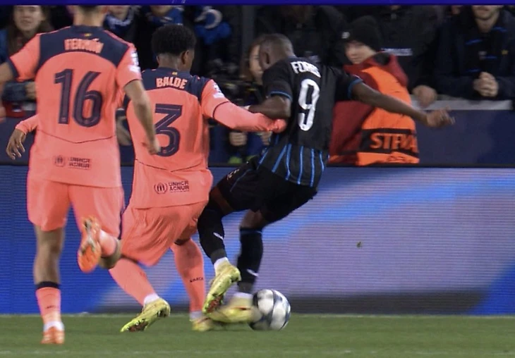 • Тэйлор с ВАР отменил пенальти после падения хавбека «Брюгге» Боржеша в штрафной «Барсы» во 2-м тайме