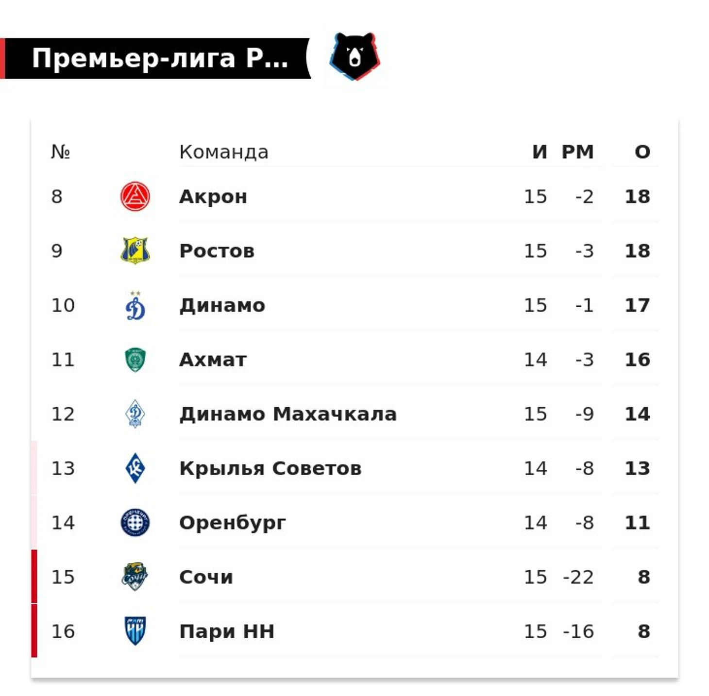 «Динамо» опустилось на 10-е место после победы «Ростова». Завтра команду Карпина может опередить и «Ахмат»