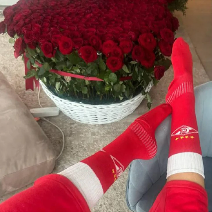 Седокова выложила фото в носках с эмблемой «Спартака» и букетом роз. Певица заявила, что у нее нет романа с игроком клуба: «Сын тренировался в их детской секции. Расследование завершено»